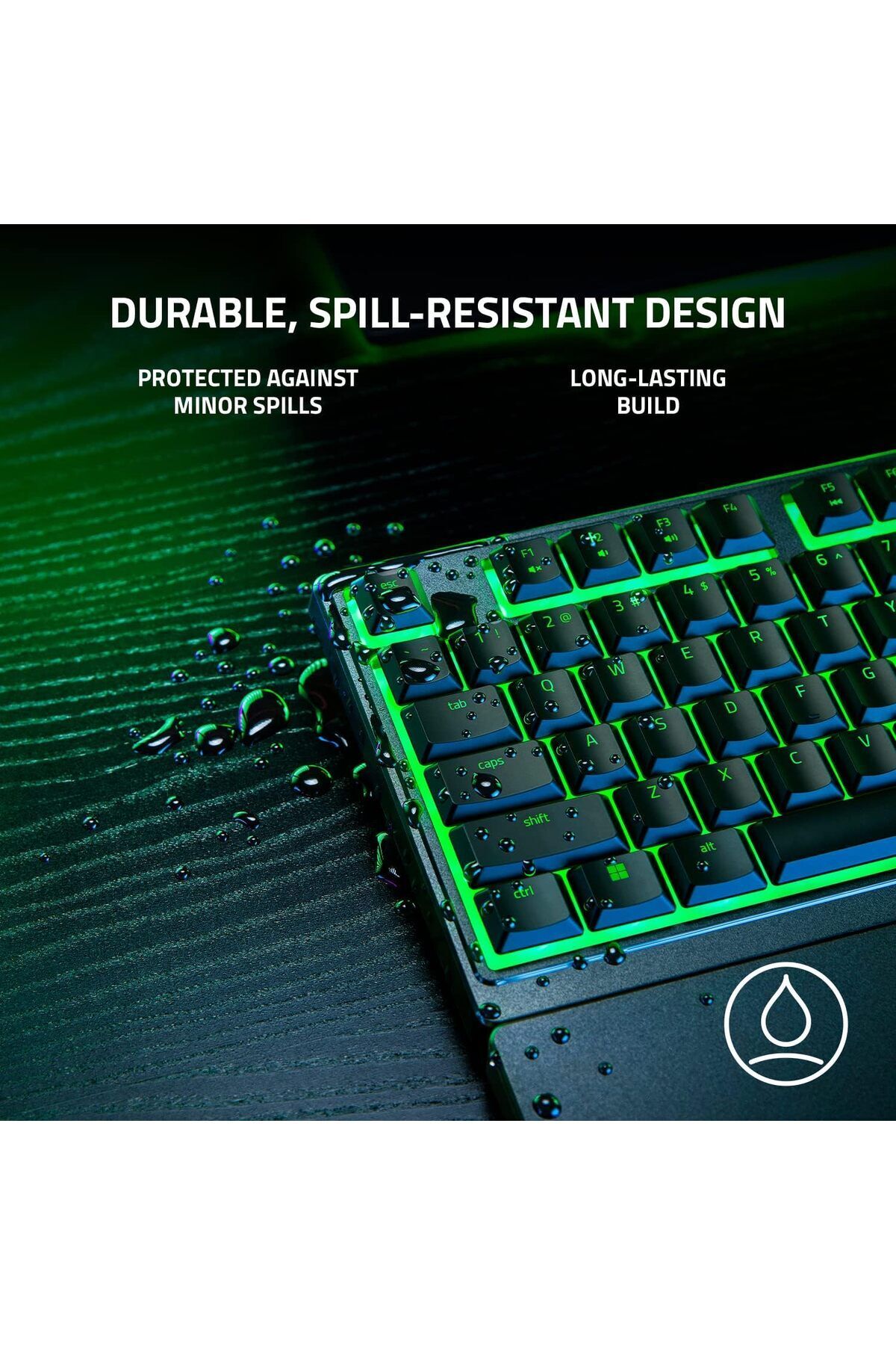 Razer Ornata V3 X'in sağlam yapısı yoğun oyun oturumları için yeterince sağlamdır ve küçük sıvı dökülmelerinin etkilerini ortadan kaldırabilir